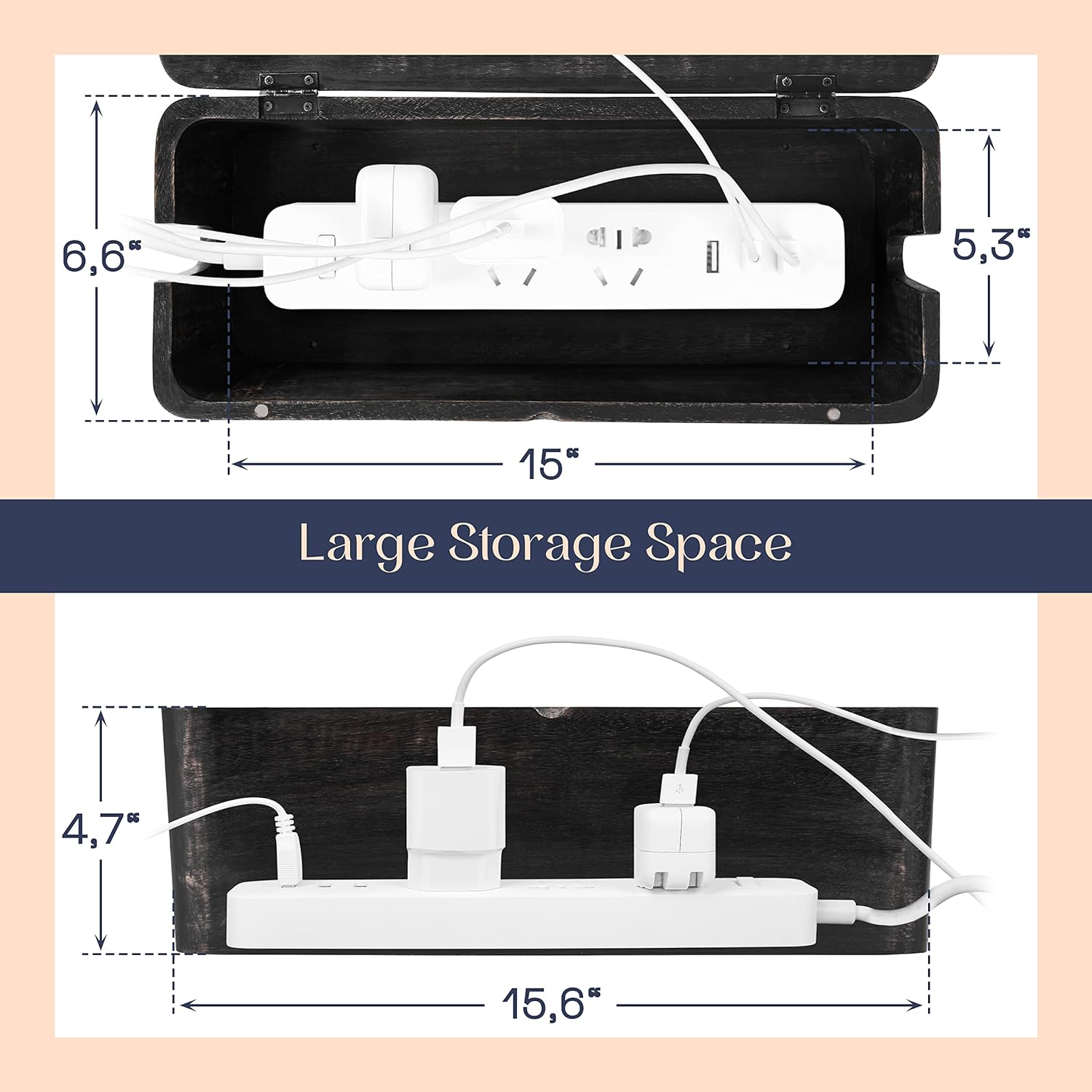 - ELIMINATE CABLE CLUTTER WITH STYLE: Add an elegant and organized touch to your decor with this cable box organizer; This large cord management box combines functionality and style