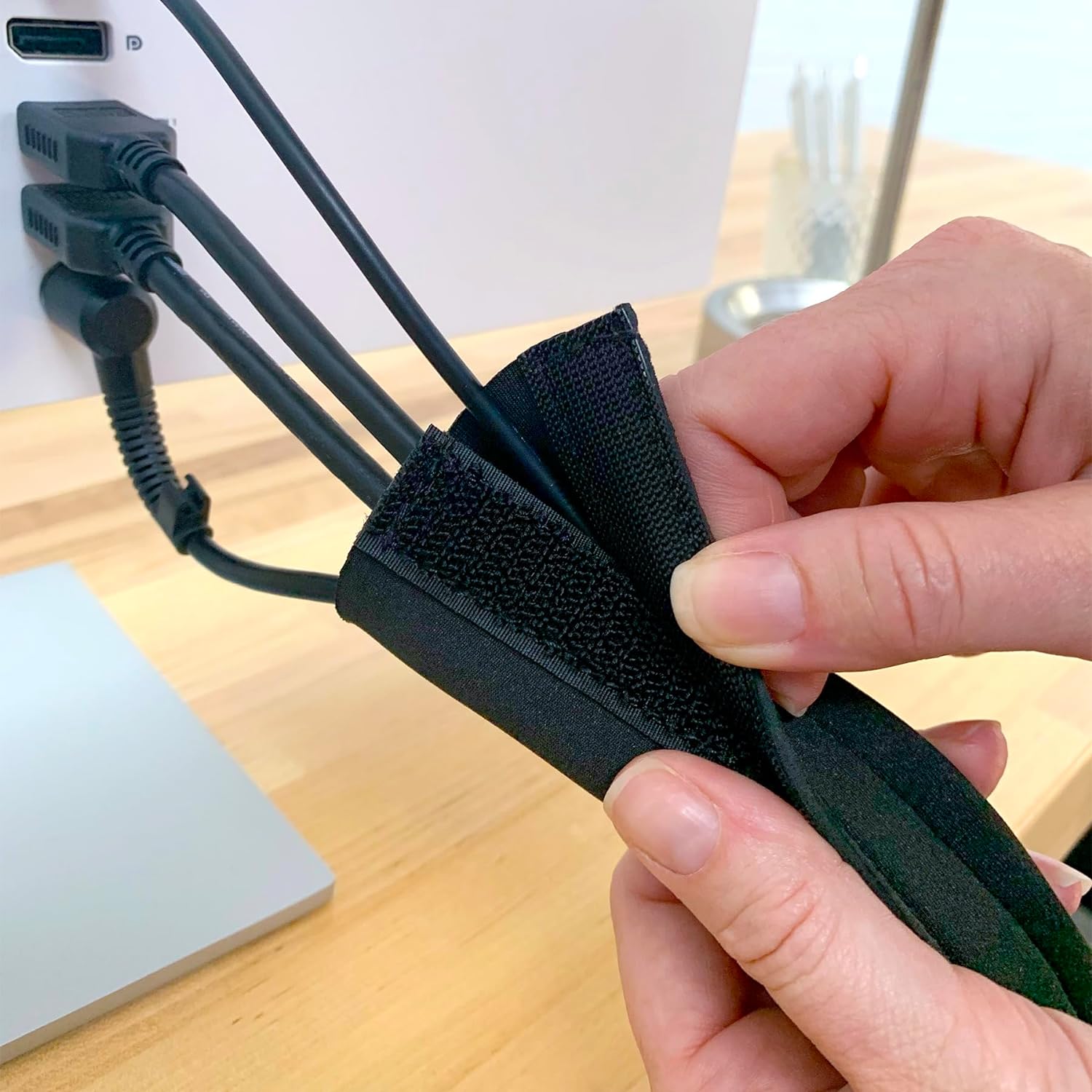 - EASY TO USE - Place the sleeve around your cords, and attach the hook and loop! Get your electrical cables off the floor and snuggled up tight in a snap. TVs and entertainment centers easily organized.
