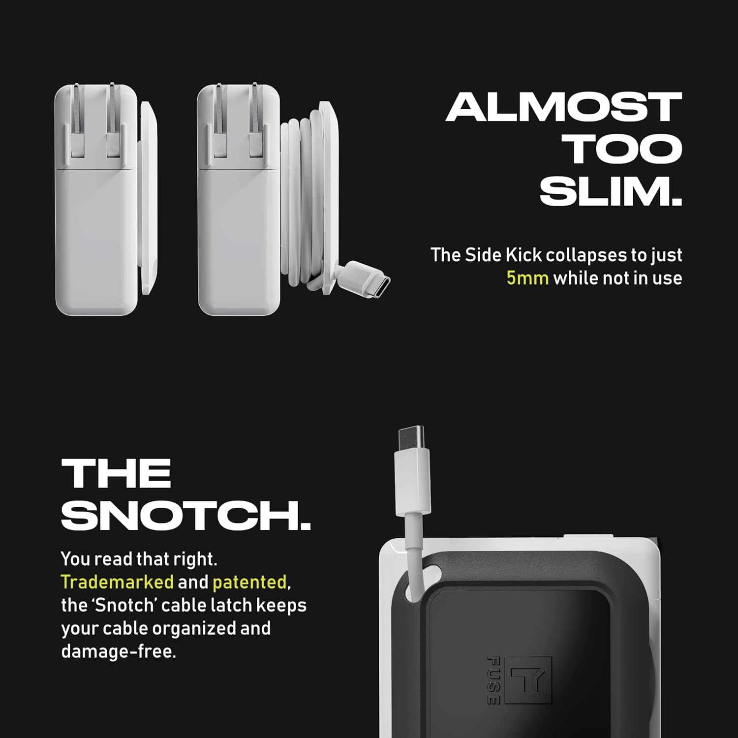 - Innovative cord reel: With its simple wind in seconds design, Side Kick sticks to your adapter and clips the cables in, making it an innovative and effective cord organizer for your at-home office or desk.