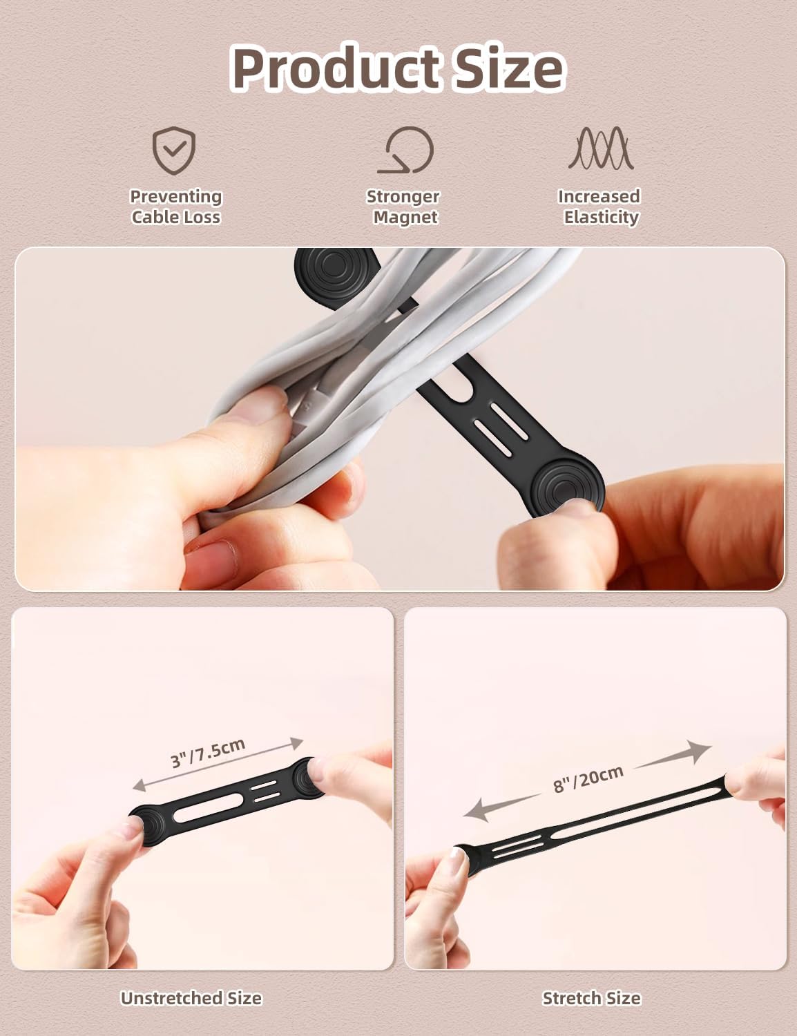 - ◎Stronger Cord Organizer — These upgraded cord straps feature even stronger magnetic force. Silicone material makes magnetic straps highly reusable. Embedded magnets ensure durability and safety.