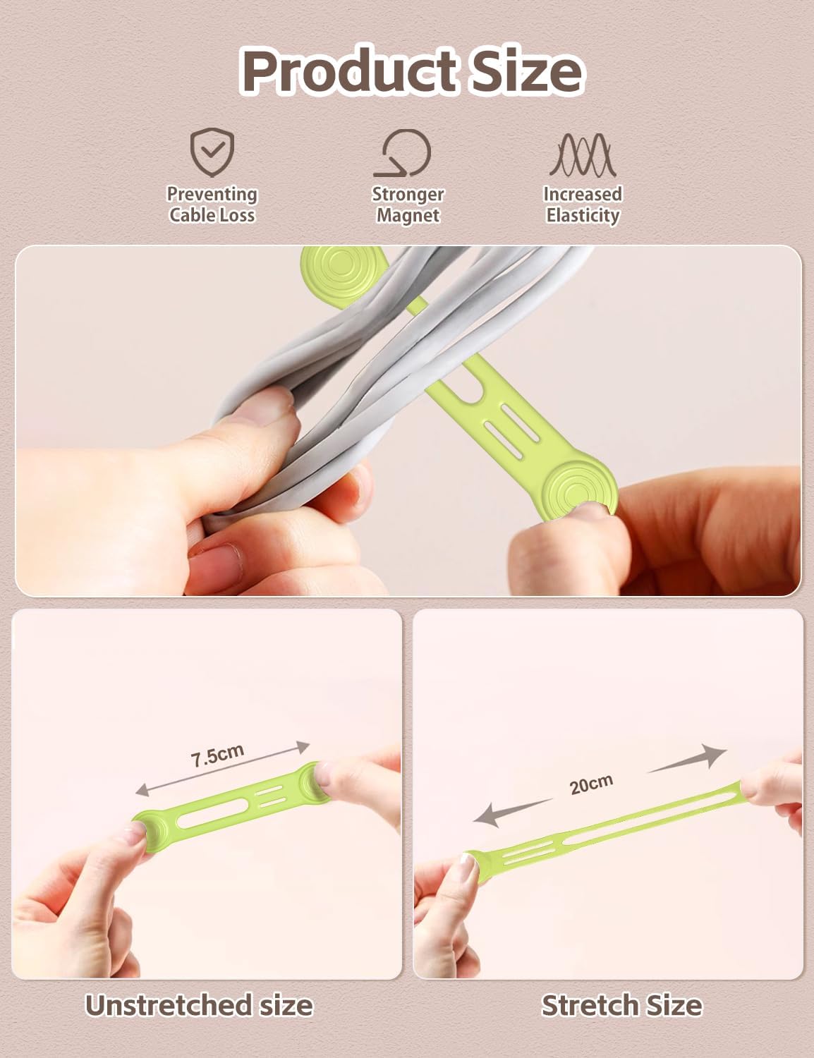 - ◎Stronger Cord Organizer — These upgraded cord straps feature even stronger magnetic force. Silicone material makes magnetic straps highly reusable. Embedded magnets ensure durability and safety.
